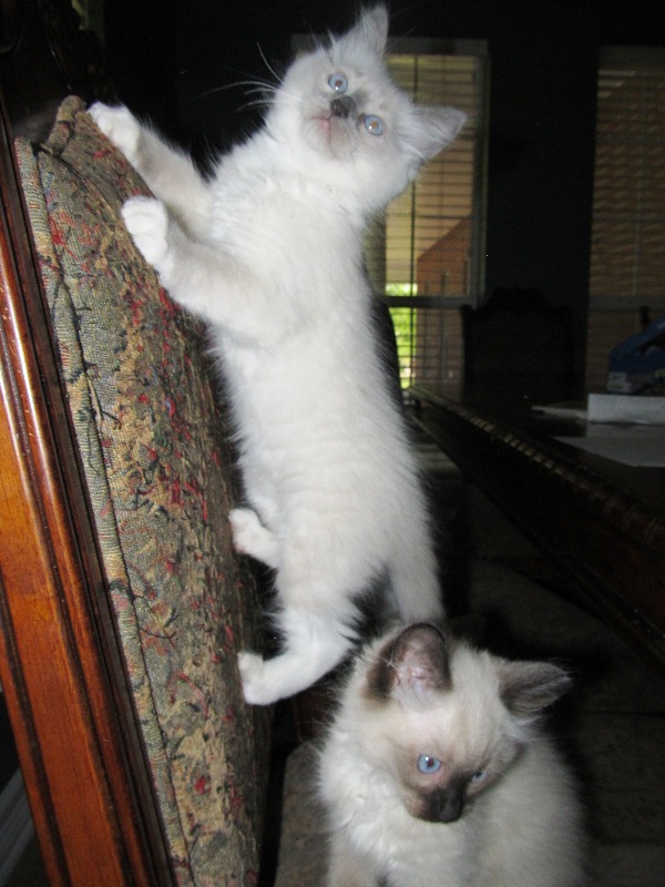 MAKE SURE YOU DO NOT PURCHASE A KITTEN CLAIMING TO BE ACA REGISTED OR CATTERY THAT CAGES, CHARGES SALES TAX, DOES THEIR OWN VACCINES YET CLAIMS THEY DO $300 TO $400 MEDICAL WORK. ACA IS THE EQUIVELENT TO A HOUSE HOLD PET REGISTRATION. ONLY PURCHASE FROM A CFA REGISTERED CATTERY THAT HAS A LONG HISTORY OF TRADITIONAL LINES. ACA ALLOWS OUTCROSSES OF DIFFERENT BREEDS TO BE REGISTERED AND THUS YOU ARE NOT ADOPTING A FULL BLOODED RAGDOLL. ACA REGISTRATION IS FOR BREEDERS THAT CAN NOT REGISTER THEIR KITTENS IN CFA OR TICA, BUT WANT TO MAKE THEIR KITTENS LOOK LIKE LEGITIMATE REGISTERED RAGDOLLS. MOST IMPORTANTLY, PLEASE CONFIRM YOU ARE ADOPTING A KITTEN THAT IS DNA NEGATIVE FOR THE FOLLOWING GENETIC DISEASES: MYBPC3M (HCM FOR MC MUTATION), MYBPC3R (HCM RAGDOLL MUTATION), PKD (KIDNEY DISEASE), PRA (RETINAL - BLINDING), MPS1, MPS7 AND MPSM. ASK THE BREEDER FOR COPIES OF THEIR DNA TESTING AND LOOK FOR THE TESTS THAT I JUST MENTIONED. PLEASE REVIEW MY KITTEN INFORMATION PAGE THAT WILL ANSWER MANY OF YOUR QUESTIONS - THANK YOU
